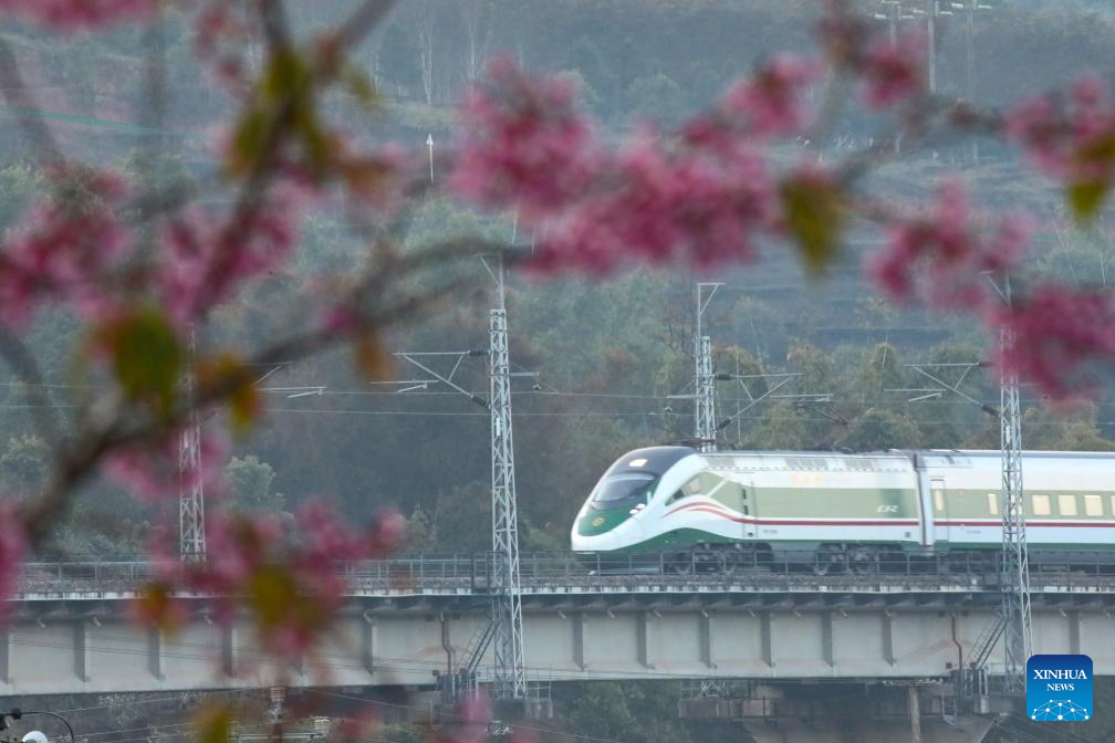 BEIJING, 25 enero, 2026 (Xinhua) -- Un tren bala circula en una sección del Ferrocarril China-Laos, en la ciudad de Jinghong, en la provincia de Yunnan, en el suroeste de China, el 25 de enero de 2026. Un nuevo horario de tren tomará efecto en China desde el 26 de enero de 2026. (Xinhua/Li Yunsheng)