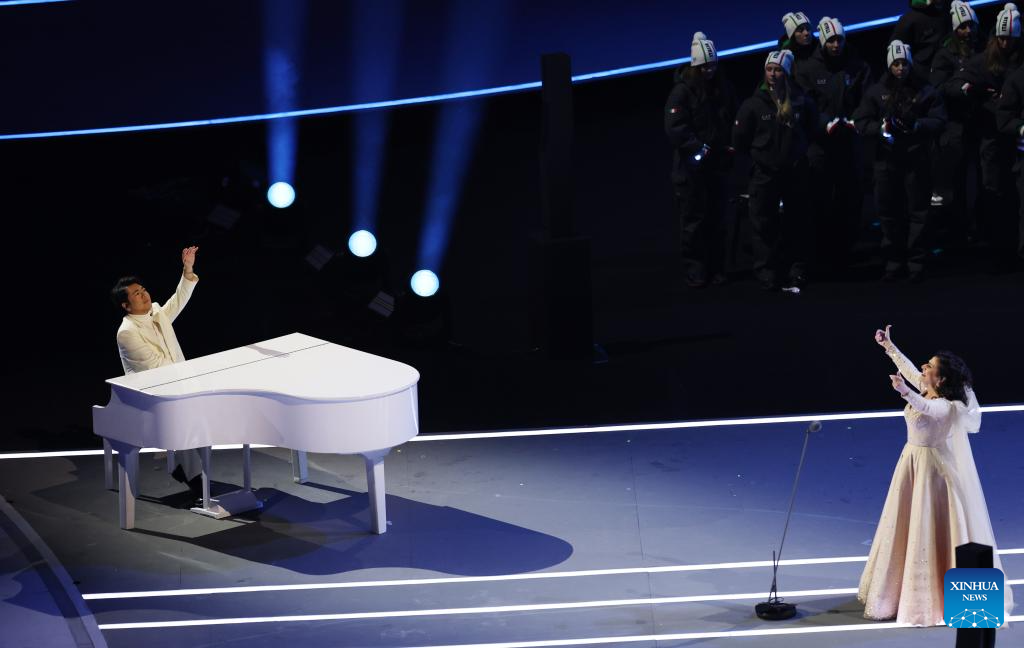 MILAN, 7 febrero, 2026 (Xinhua) -- El pianista chino Lang Lang (i), y la cantante de ópera italiana Cecilia Bartoli, realizando una presentación durante la ceremonia de inauguración de los Juegos Olímpicos de Invierno Milán-Cortina 2026 en el Estadio Olímpico San Siro, en Milán, Italia. (Xinhua/Wang Kaiyan)