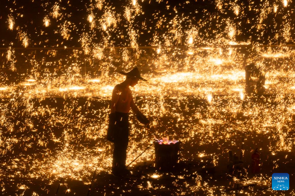 Se lleva a cabo en Shanghai espectáculo de fuegos artificiales de hierro fundido