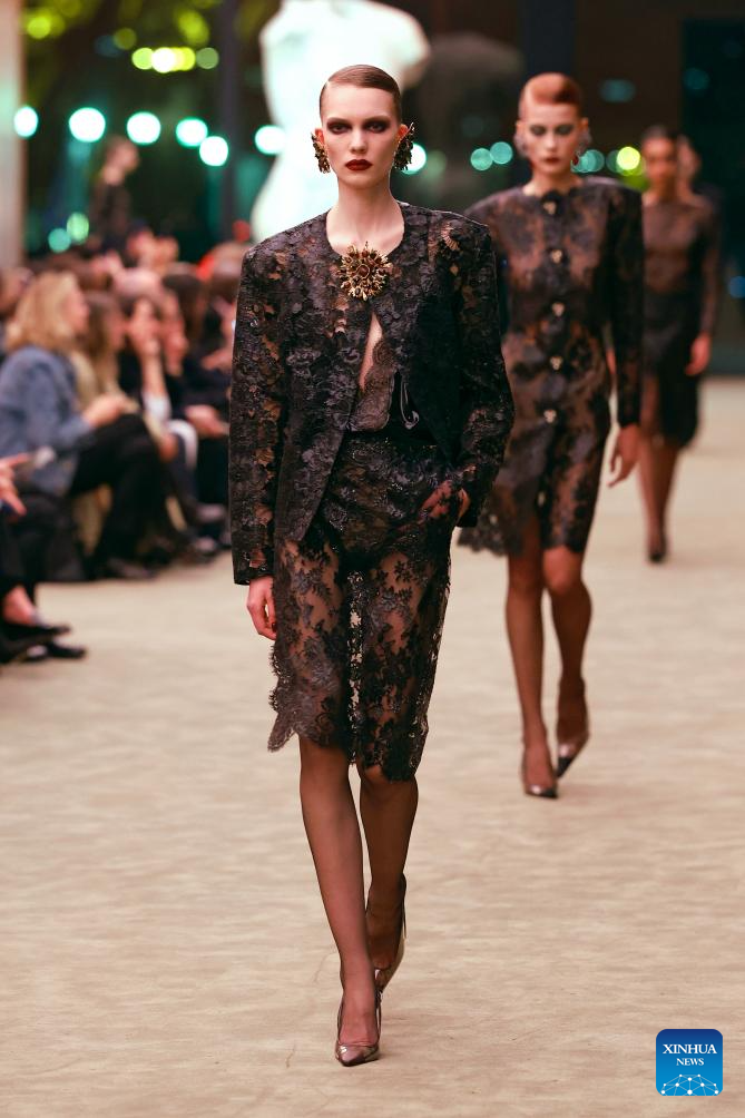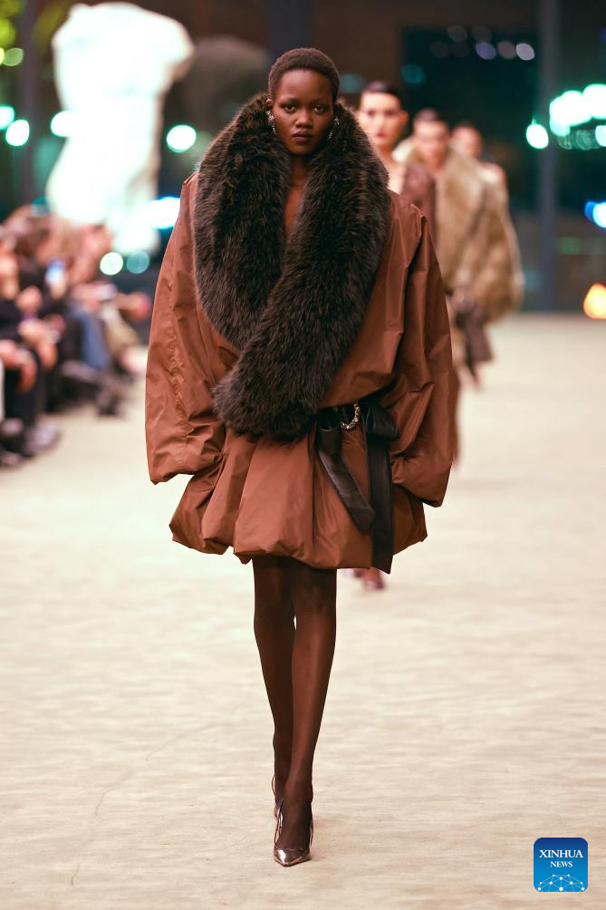 PARIS, 4 marzo, 2026 (Xinhua) -- Imagen del 3 de marzo de 2026 de una modelo presentando una creación de las colecciones listas para usar Otoño/Invierno 2026-2027 de Saint Laurent durante la Semana de la Moda de París, en París, Francia. (Xinhua/MeetEurope)