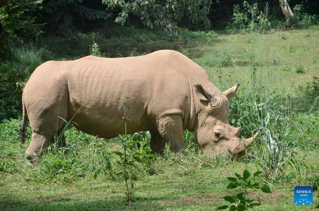 ENTEBBE, 4 marzo, 2026 (Xinhua) -- Imagen del 3 de marzo de 2026 de un rinoceronte blanco pastando en el Centro de Educación para la Conservación de la Vida Silvestre de Uganda, en Entebbe, Uganda. El Día Mundial de la Vida Silvestre, que se conmemora anualmente el 3 de marzo, fue establecido por las Naciones Unidas en 2013 para crear conciencia y celebrar las contribuciones de las especies animales y vegetales silvestres a la supervivencia humana. (Xinhua/Nicholas Kajoba)