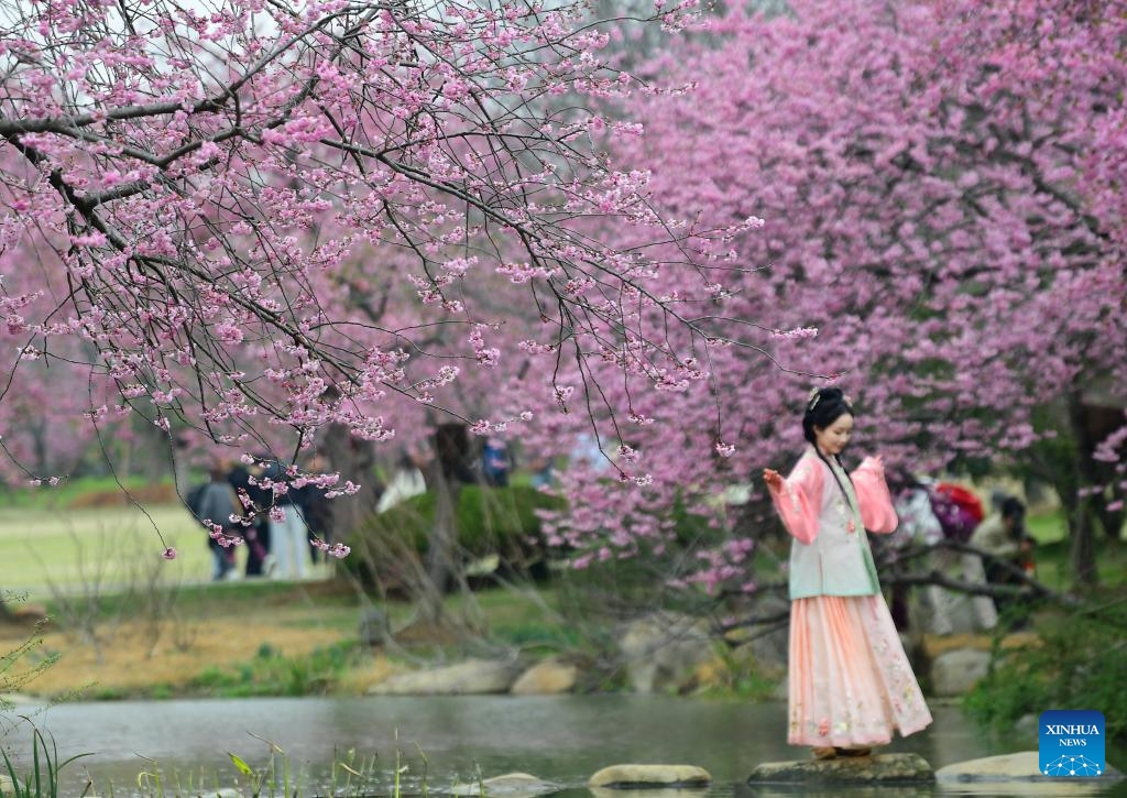 Turistas disfrutan del paisaje primaveral en China