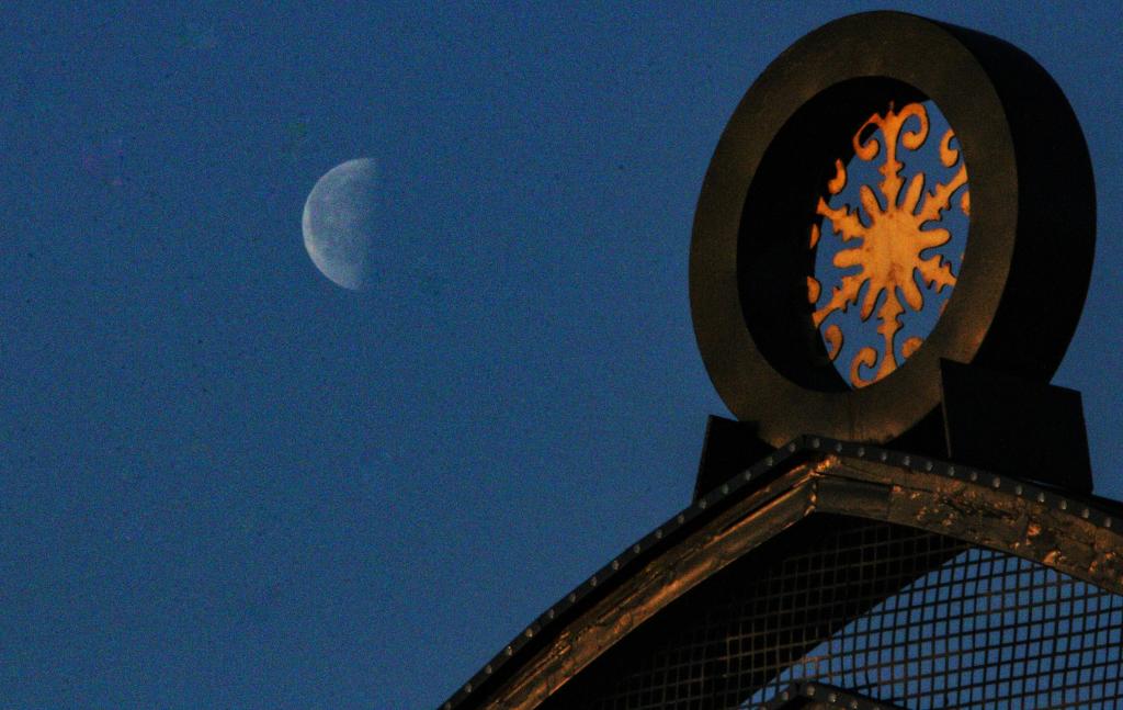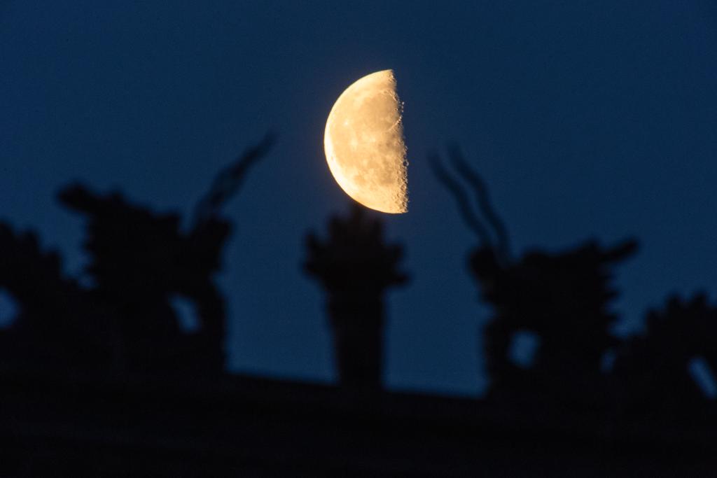 Imagen del 11 de marzo de 2026 de la luna en su fase de cuarto menguante vista en Qiqihar, en la provincia de Heilongjiang, en el noreste de China. El cuarto menguante más pequeño de 2026 apareció el miércoles. (Xinhua/Wang Yonggang)