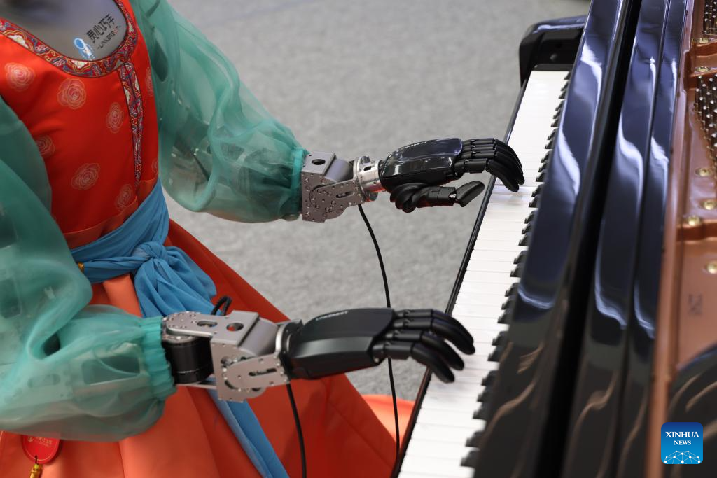 Un robot humanoide toca el piano en el Centro Internacional de Innovación de Zhongguancun, en Beijing, capital de China, el 25 de marzo de 2026. El Foro Zhongguancun 2026 se lleva a cabo del 25 al 29 de marzo bajo el tema "Integración plena entre la innovación tecnológica y la innovación industrial". (Xinhua/Jin Liwang)