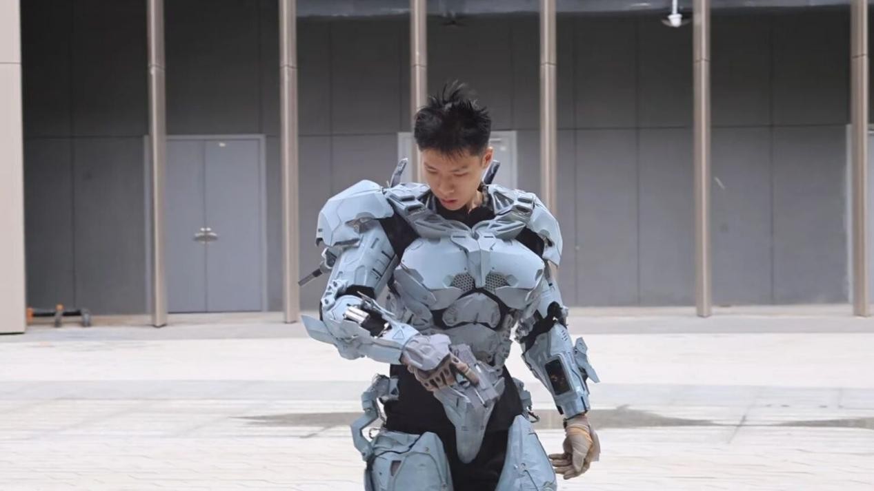 | Huang Yanjun, del municipio de Chongqing, en el suroeste de China, muestra un traje mecánico que ha desarrollado. (Foto proporcionada por Huang Yanjun) |