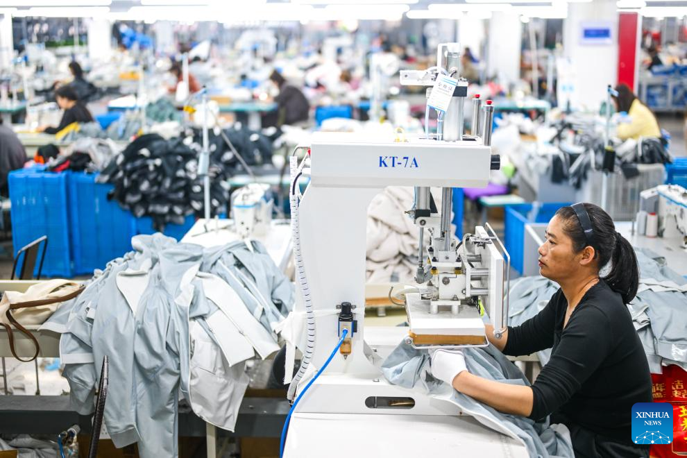 TAIZHOU, 10 abril, 2026 (Xinhua) -- Una empleada trabaja en un taller de una empresa, en el distrito de Sanmen de la ciudad de Taizhou, en la provincia de Zhejiang, en el este de China, el 10 de abril de 2026. En los últimos años, la ciudad de Taizhou ha impulsado el desarrollo de clústeres en su industria manufacturera de artículos deportivos, creando varios clústeres que abarcan chaquetas para actividades al aire libre, productos de ocio para actividades al aire libre, gafas deportivas y productos para ciclismo y actividades al aire libre relacionadas. (Xinhua/Jiang Han)