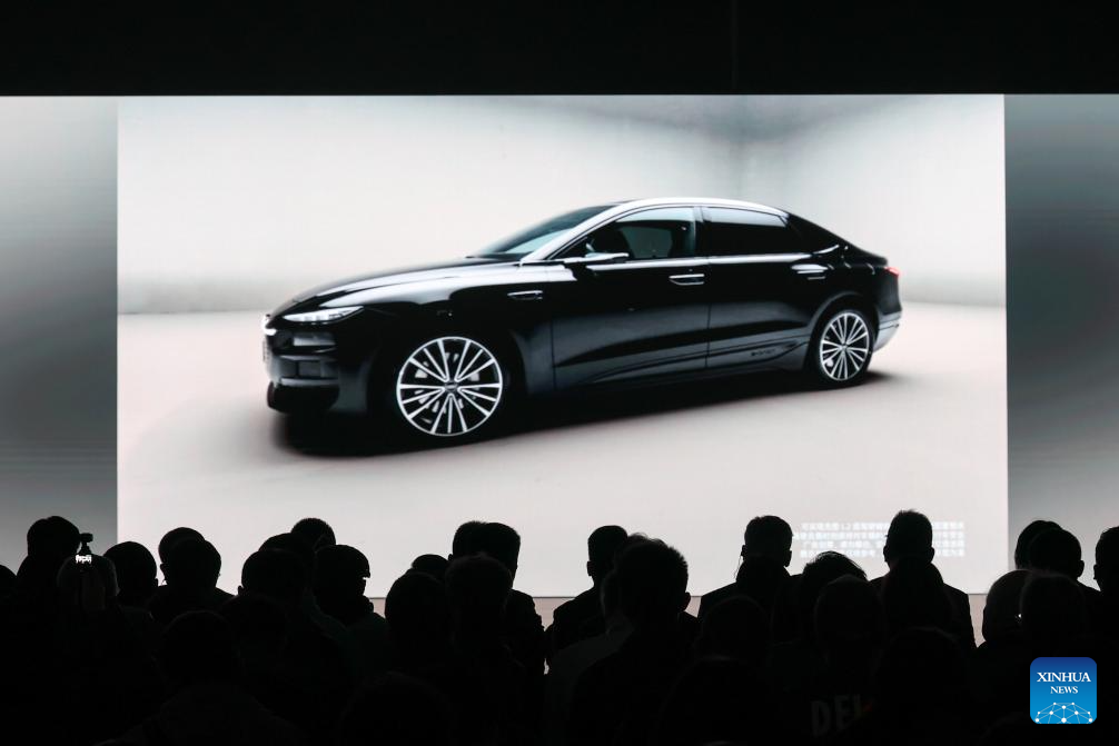 CHANGCHUN, 10 abril, 2026 (Xinhua) -- Invitados observan videos promocionales durante un evento de lanzamiento para el A6L e-tron, un vehículo eléctrico de batería, marcando su debut en el mercado chino en Audi FAW NEV Co., Ltd., en Changchun, en la provincia de Jilin, en el noreste de China, el 10 de abril de 2026. (Xinhua/Xu Chang)