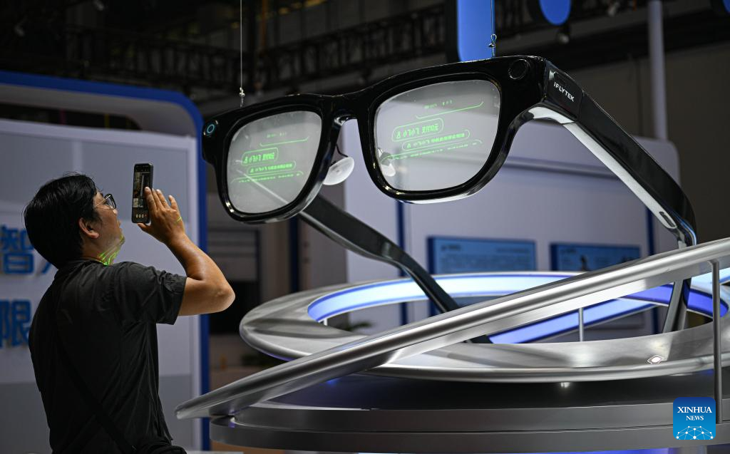 Imagen del 10 de abril de 2026 de un modelo de gafas con inteligencia artificial visto en el Centro Internacional de Convenciones y Exposiciones de Hainan, sede principal para la próxima VI Exposición Internacional de Productos de Consumo de China (CICPE, por sus siglas en inglés), en Haikou, en la provincia de Hainan, en el sur de China. Programada para llevarse a cabo en la provincia de Hainan, en el sur de China, del 13 al 18 de abril, esta exposición contará con la participación de más de 3.400 marcas de más de 60 países y regiones. (Xinhua/Pu Xiaoxu)