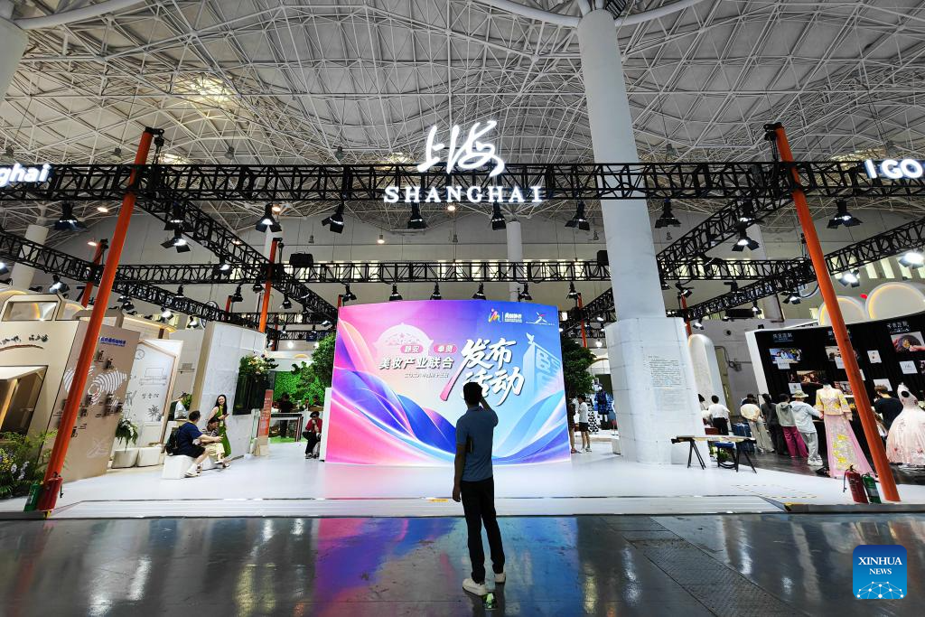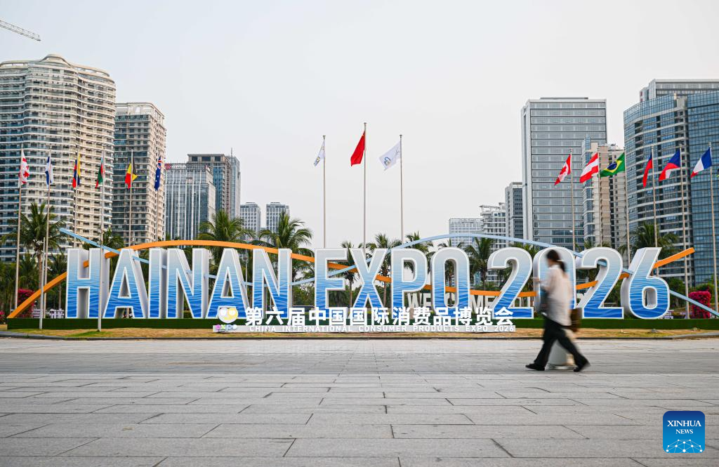 El estand de exposición de Shanghai, provincia invitada de honor, es visto en el Centro Internacional de Convenciones y Exposiciones de Hainan, sede principal para la próxima VI Exposición Internacional de Productos de Consumo de China (CICPE, por sus siglas en inglés), en Haikou, en la provincia de Hainan, en el sur de China, el 11 de abril de 2026. Programada para llevarse a cabo en la provincia de Hainan, en el sur de China, del 13 al 18 de abril, esta exposición contará con la participación de más de 3.400 marcas de más de 60 países y regiones. (Xinhua/Pu Xiaoxu)