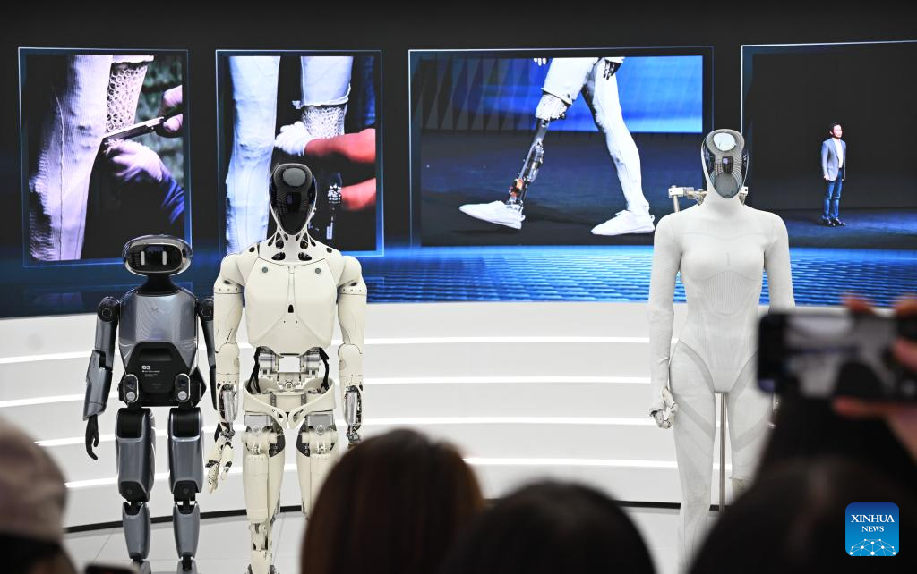 Imagen del 24 de marzo de 2026 de personas tomando fotografías de robots con inteligencia artificial en el Parque Tecnológico Xpeng, en Guangzhou, en la provincia de Guangdong, en el sur de China. En los últimos años la provincia de Guangdong ha adoptado diversas medidas para explorar el desarrollo y la aplicación de la inteligencia artificial (IA) incorporada. Clústeres industriales líderes a nivel nacional están en auge en ciudades como Shenzhen y Guangzhou, en la provincia. Actualmente, Guangdong está acelerando las innovaciones en IA y robótica en sectores que incluyen el cuidado de la salud, la educación, la gestión urbana y las industrias especializadas. (Xinhua/Deng Hua)